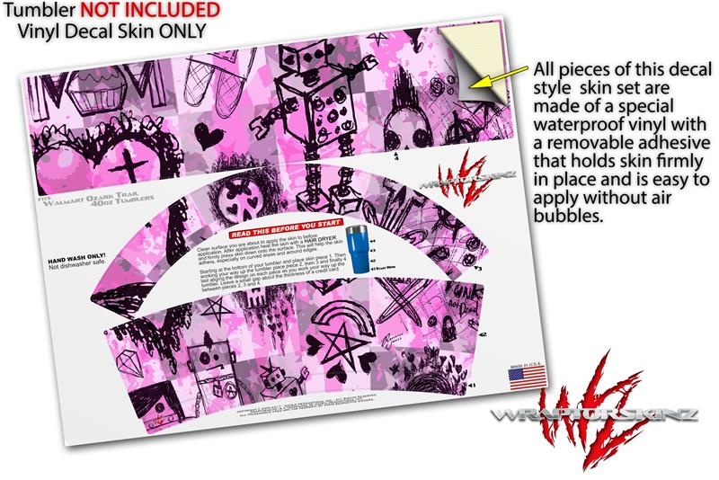 Skin Decal Wrap for Walmart Ozark Trail Tumblers 40oz Scene Kid Sketches Pink (TUMBLER NOT INCLUDED) by WraptorSkinz