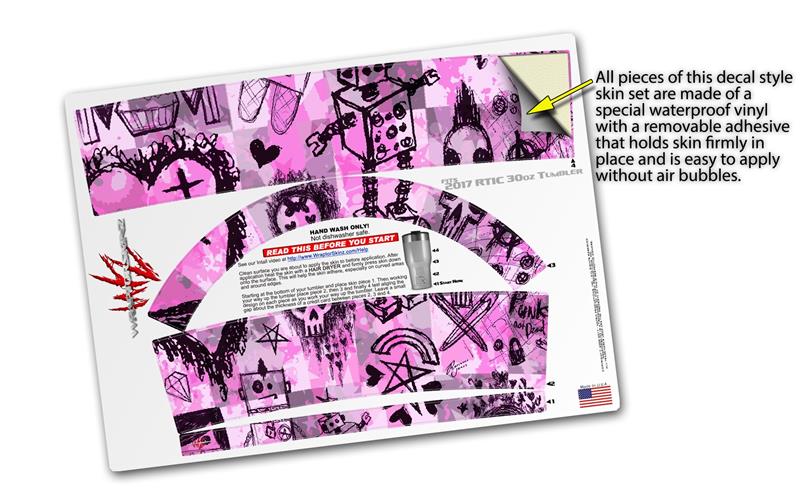 WraptorSkinz Skin Wrap compatible with 2017 and newer RTIC Tumblers 30oz Scene Kid Sketches Pink (TUMBLER NOT INCLUDED)