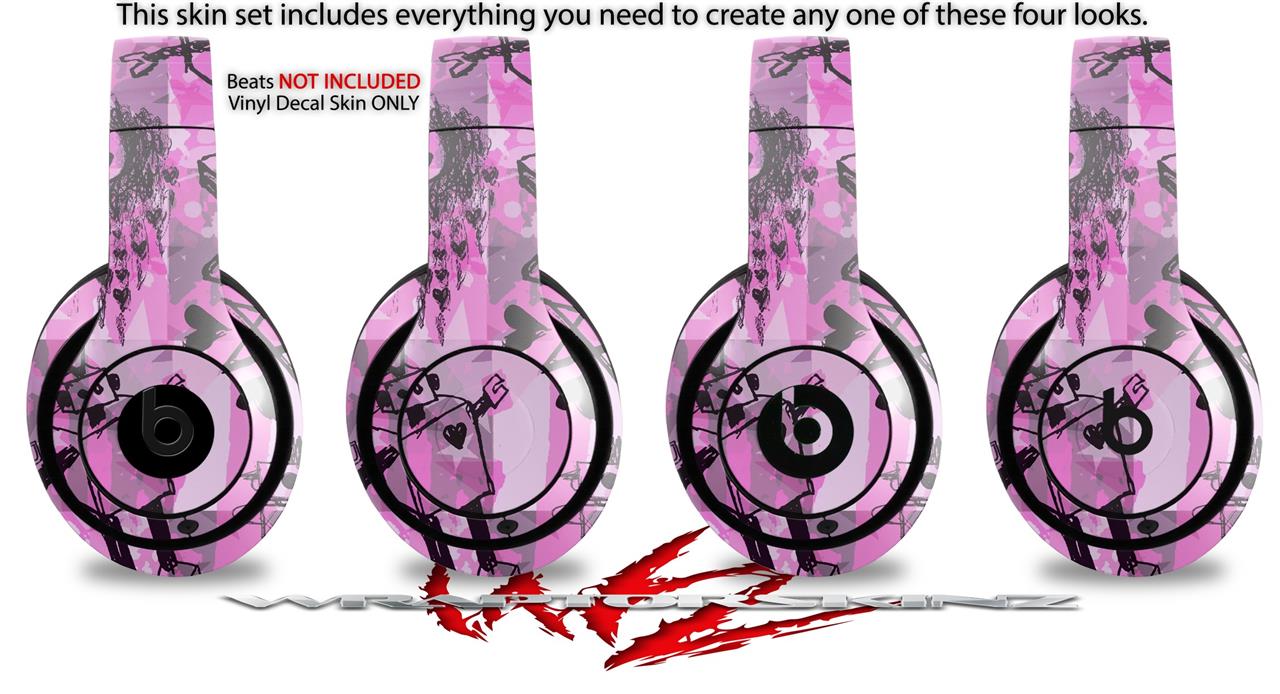 WraptorSkinz Skin Decal Wrap compatible with Beats Studio 2 and 3 Wired and Wireless Headphones Scene Kid Sketches Pink Skin Only (HEADPHONES NOT INCLUDED)
