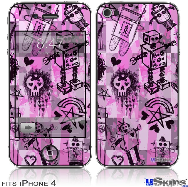 iPhone 4 Decal Style Vinyl Skin - Scene Kid Sketches Pink (DOES NOT fit newer iPhone 4S)