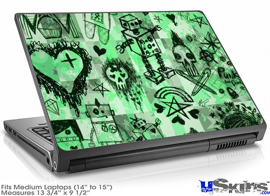 Laptop Skin (Medium) - Scene Kid Sketches Green