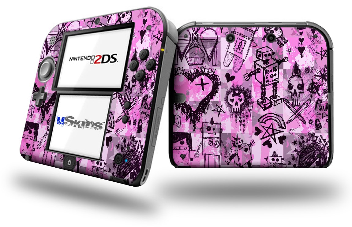 Scene Kid Sketches Pink - Decal Style Vinyl Skin fits Nintendo 2DS - 2DS NOT INCLUDED